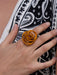 Monica Krexa's ring is made in Brazil and crafted from lightweight recyclable anodized aluminium. The metal has been twisted and looped to create this interesting and abstract statement piece that is sure to get you noticed. Adjust the size of this ring to wear on any finger!