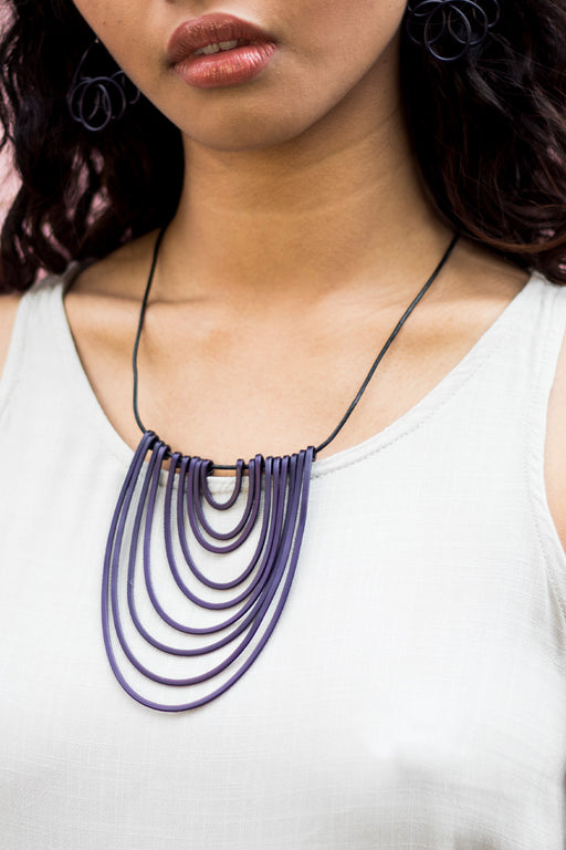 Monica KrexaMonica Krexa's necklace is made in Brazil and crafted from lightweight recyclable anodized aluminium. Pieces of the metal have been cut at differen...