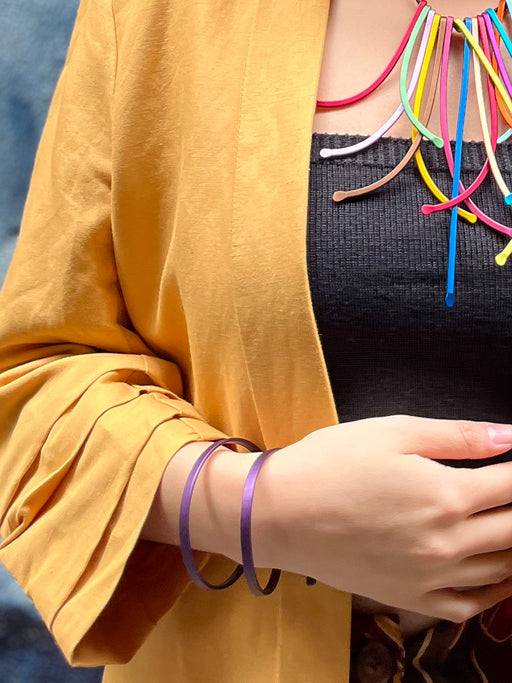 Monica Krexa's bracelets are made in Brazil and crafted from lightweight recyclable anodized aluminium that has been bent to create a textured thin...