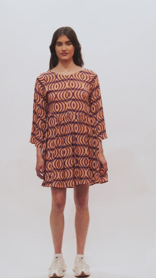 Product Description: An easy mini swing dress with a gathered waistline, round neckline and wide full length sleeves. Product De...