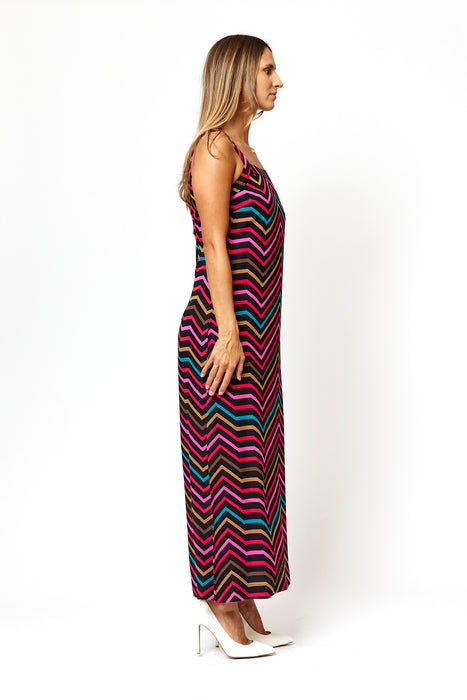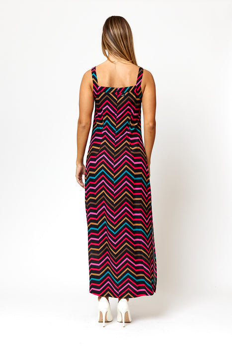 Straight fit sleeveless maxi dress with square neckline and side slit. This dress comes with an invisible back zip.